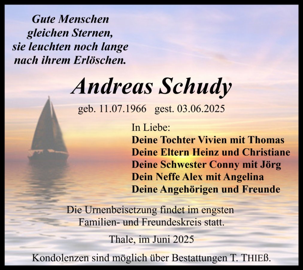 Andreas Schudygestorben am 31. Mai 2025