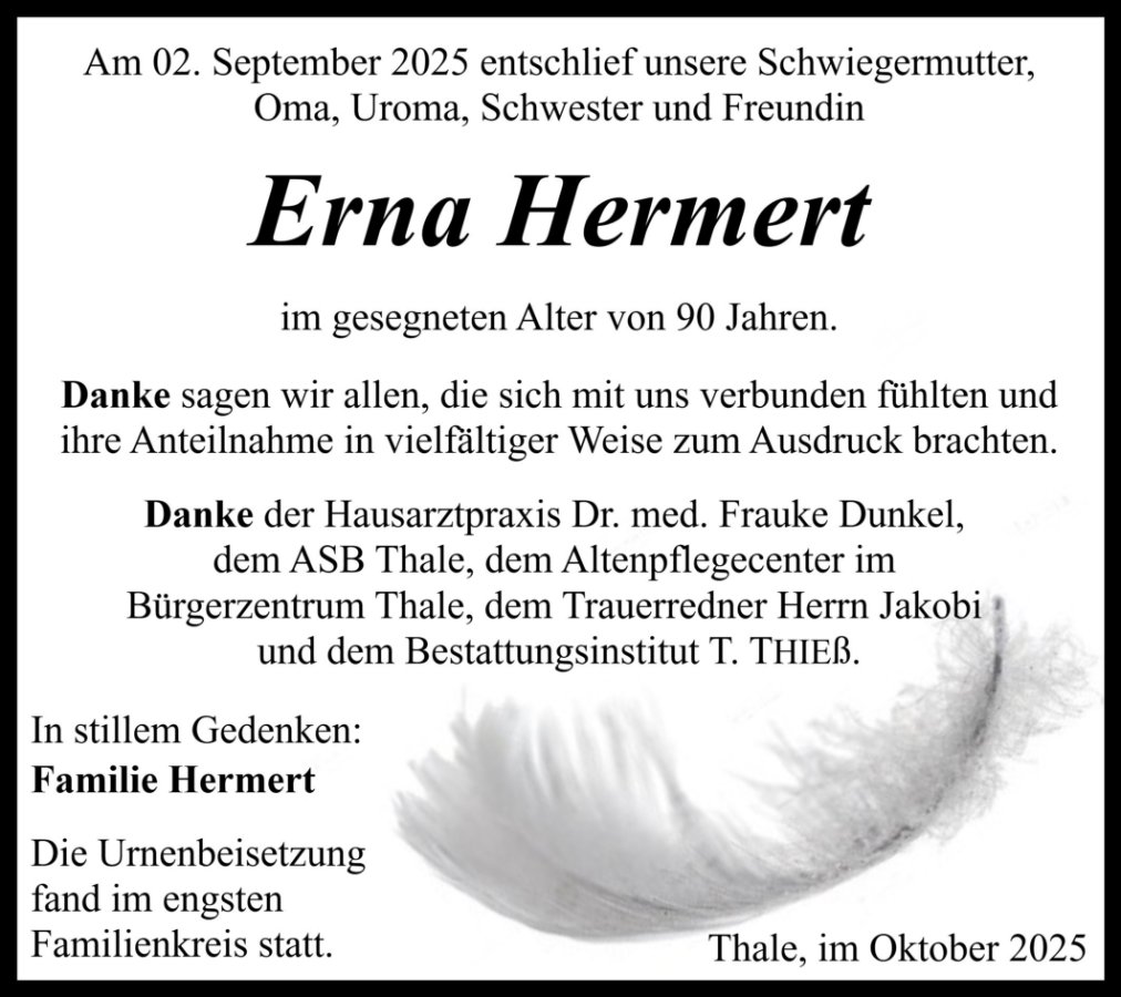 gestorben am 2. September 2025 in Thale