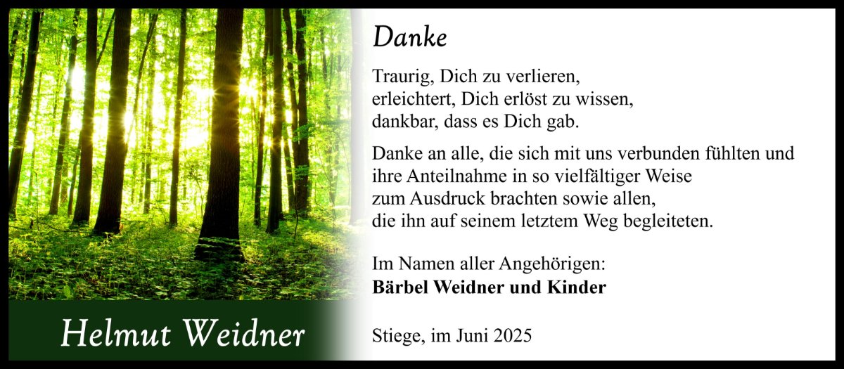 gestorben am 18. Mai 2025 in Oberharz am Brocken OT Stiege