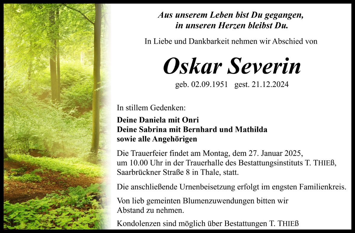 Oskar Severingestorben am 21. Dezember 2024